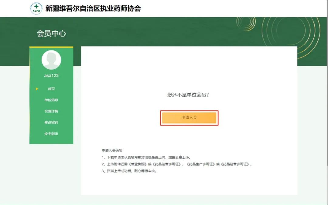 (一)在本人执业药师继续教育管理平台(?新疆维吾尔自治区执业药师协会 个人会员单位会员栏,点击点击登录,然后填写《会员登记表》后确认提交;
