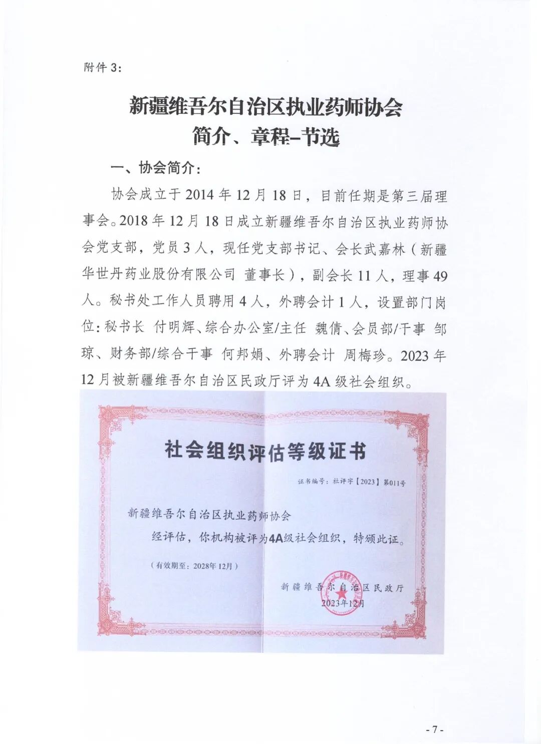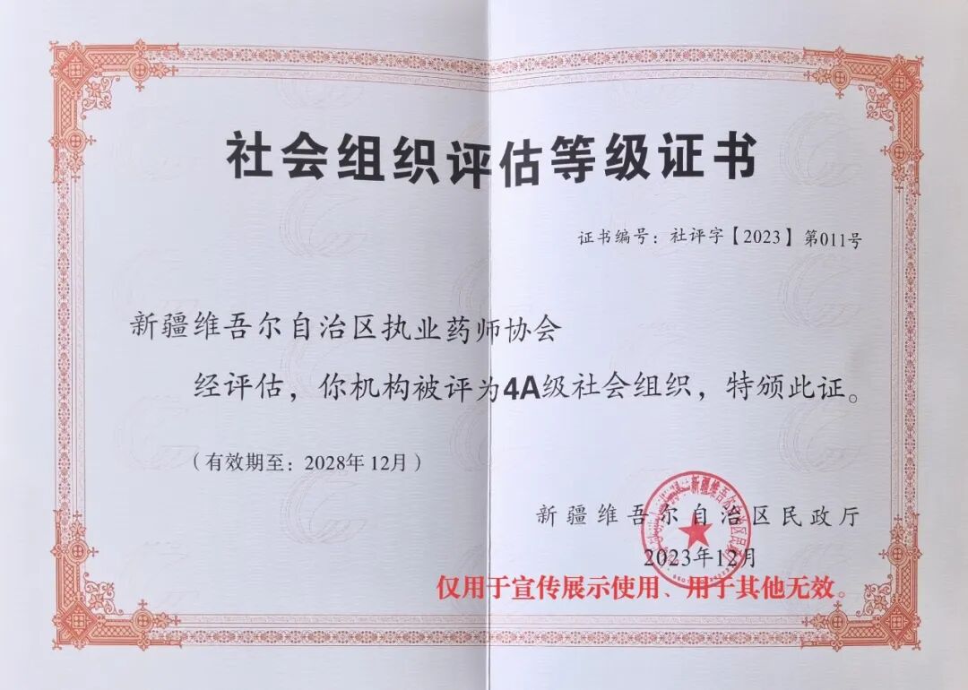新疆维吾尔自治区执业药师协会AAAA社会组织: