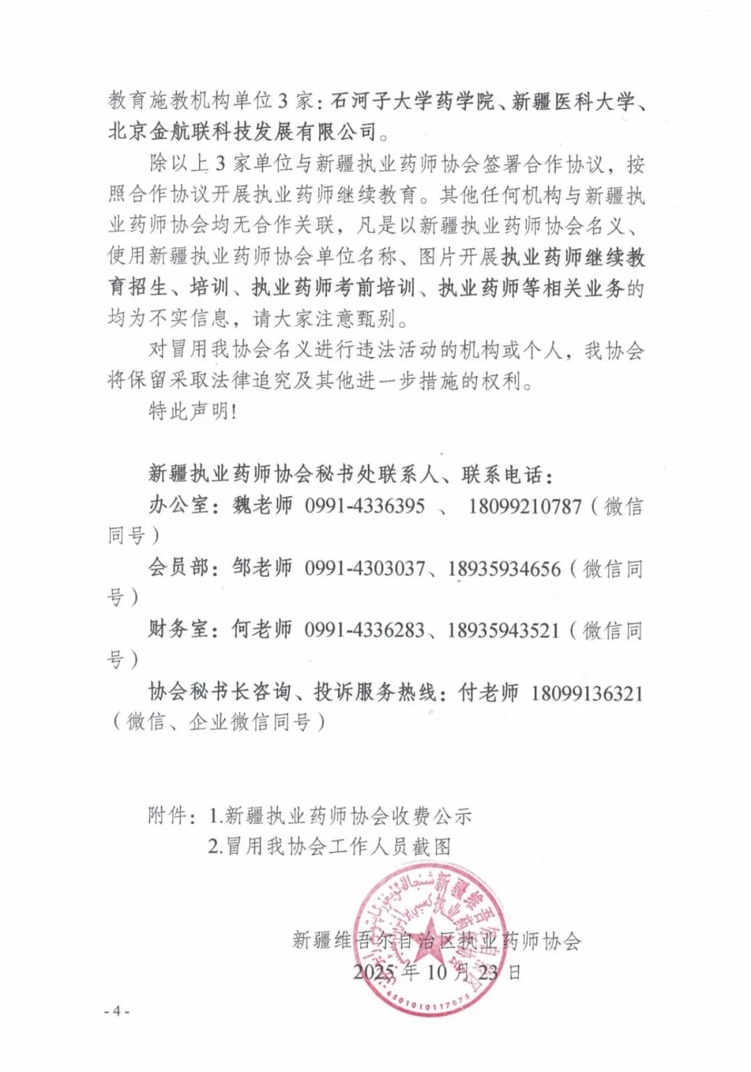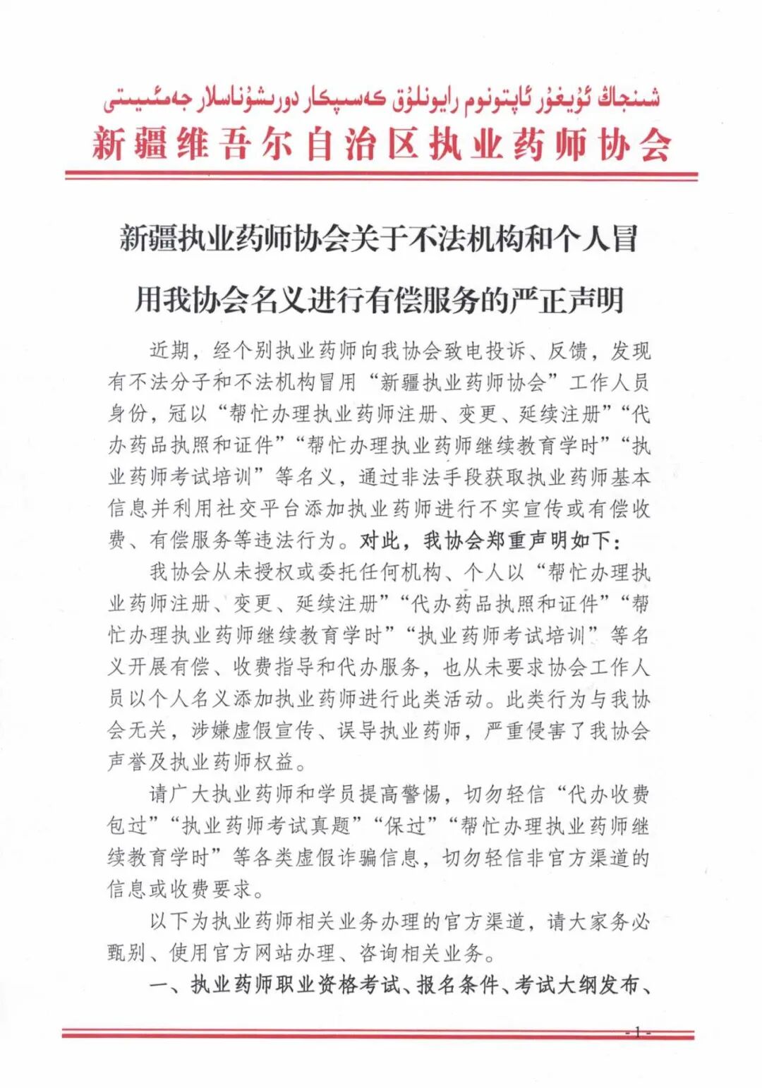 新疆执业药师协会关于不法机构和个人冒用我协会名义进行有偿服务的严正声明