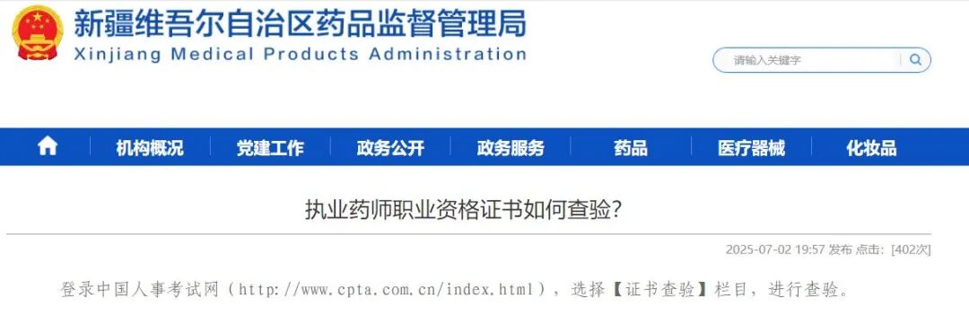 来源:国家药品监督管理局、新疆维吾尔自治区药品监督管理局、中国人事考试网、新疆专业技术人员管理平台官网