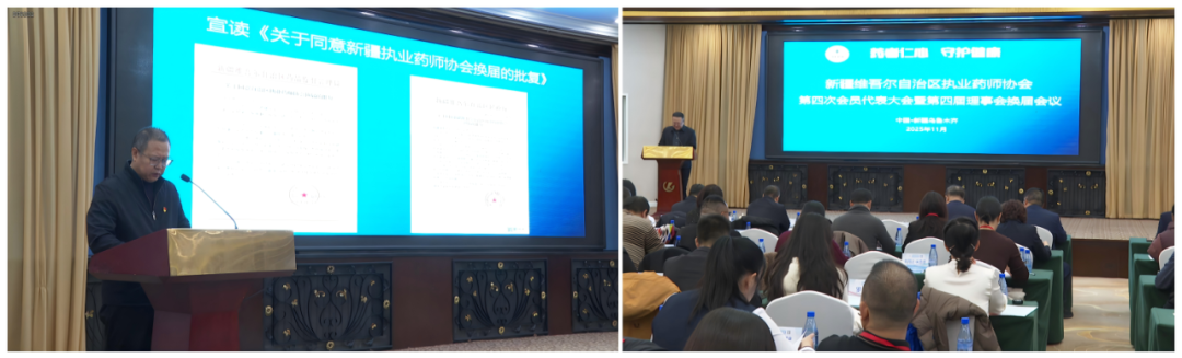 2025年11月25日上午,新疆维吾尔自治区执业药师协会第四次会员代表大会暨第四届理事会换届大会在乌鲁木齐隆重召开。自治区药品监督管理局、自治区民政厅、自治区人力资源和社会保障厅、自治区卫生健康委员会、自治区药物研究院,以及兵团食品药品审评核查中心等单位相关负责人莅临大会指导。新疆药学会、新疆医疗保障研究会、自治区药品工业协会、自治区药品流通协会、新疆医疗器械行业协会、新疆美容化妆品行业协会、新疆化妆品原料协会等兄弟协会代表,与来自全区各地及兵团的执业药师会员代表齐聚一堂,共商新疆执业药师事业发展大计。