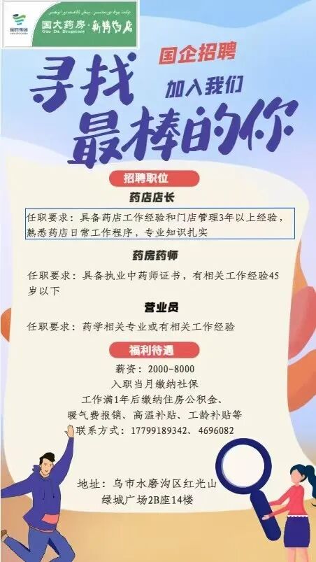 【招聘信息】会员单位--国药集团国大药房·新特药店诚邀您的加入