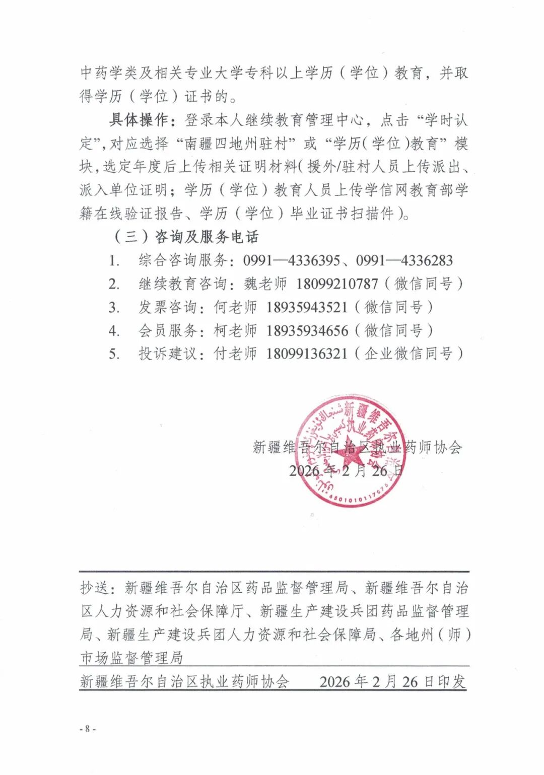 2026年度执业药师继续教育于2026年3月2日10:00开始报名学习,请各执(从)业药师合理安排时间报名参加学习、考试取得学时证明。