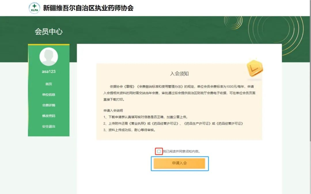 (三)阅读入会须知,点击申请入会按钮。
