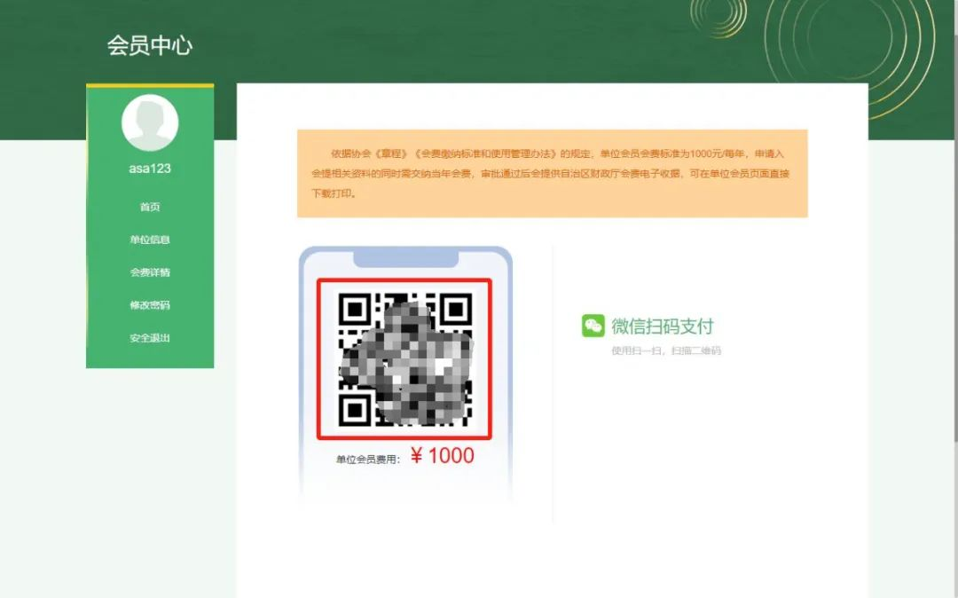 (五)微信扫码缴纳会费。
